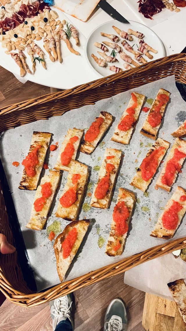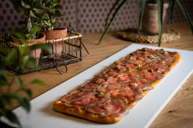 4. Tarte salée coca à la viande (longaniza) et poivrons caramélisés au moscatel (G)